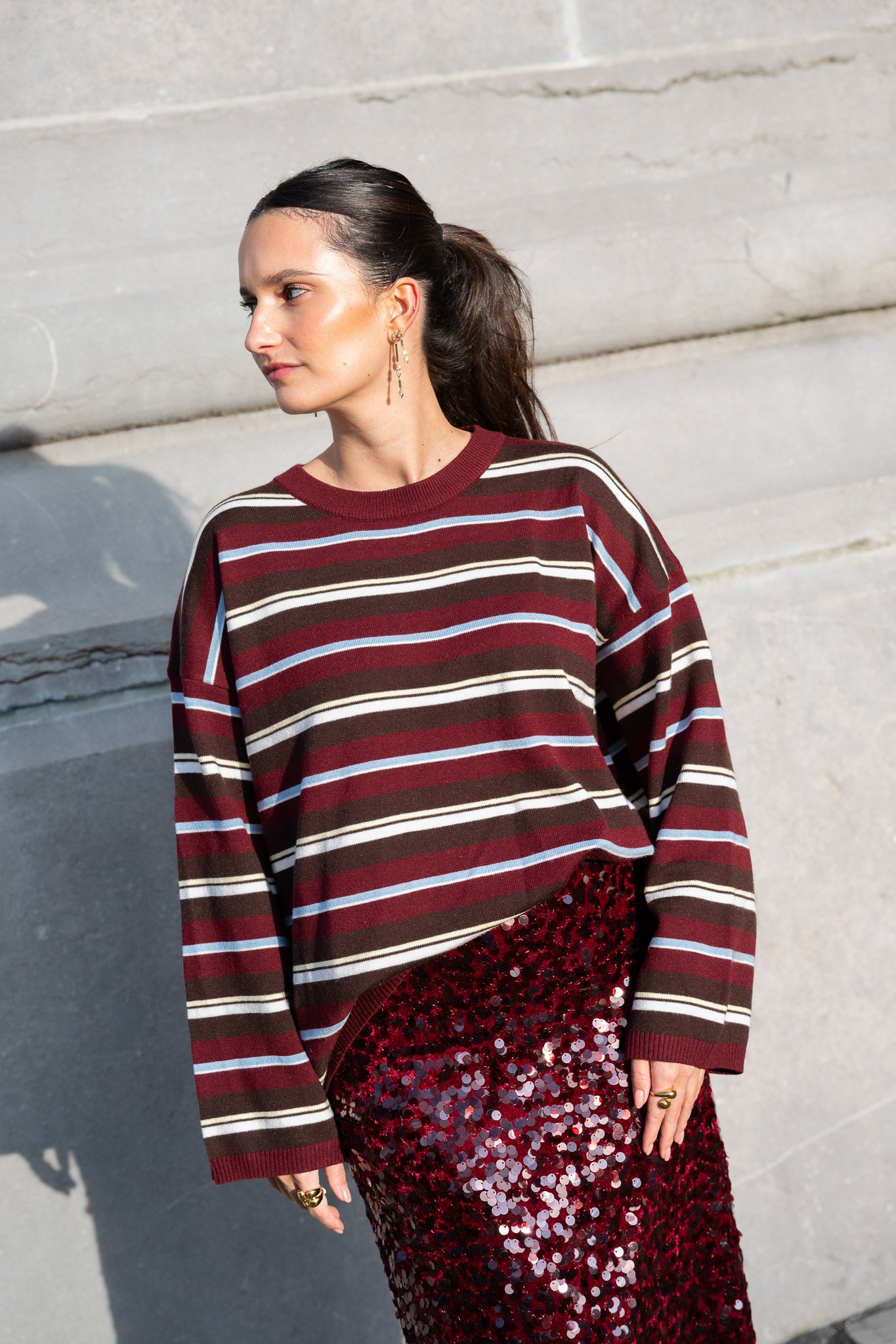 Celia Sequin Skirt Wine