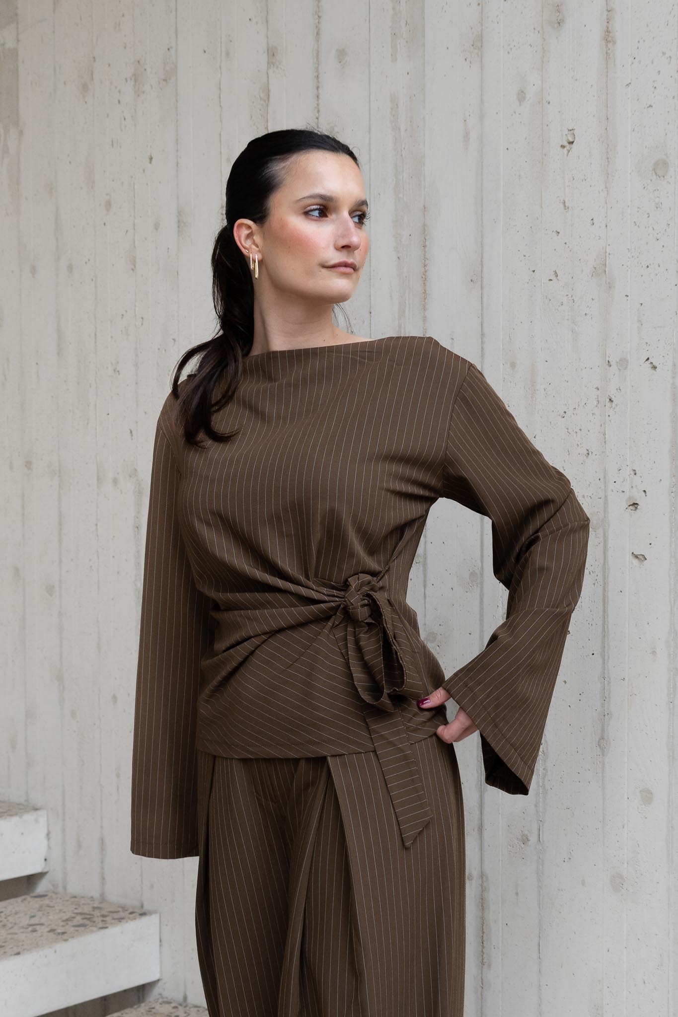 Zara Pinstripe Blouse Chocolate